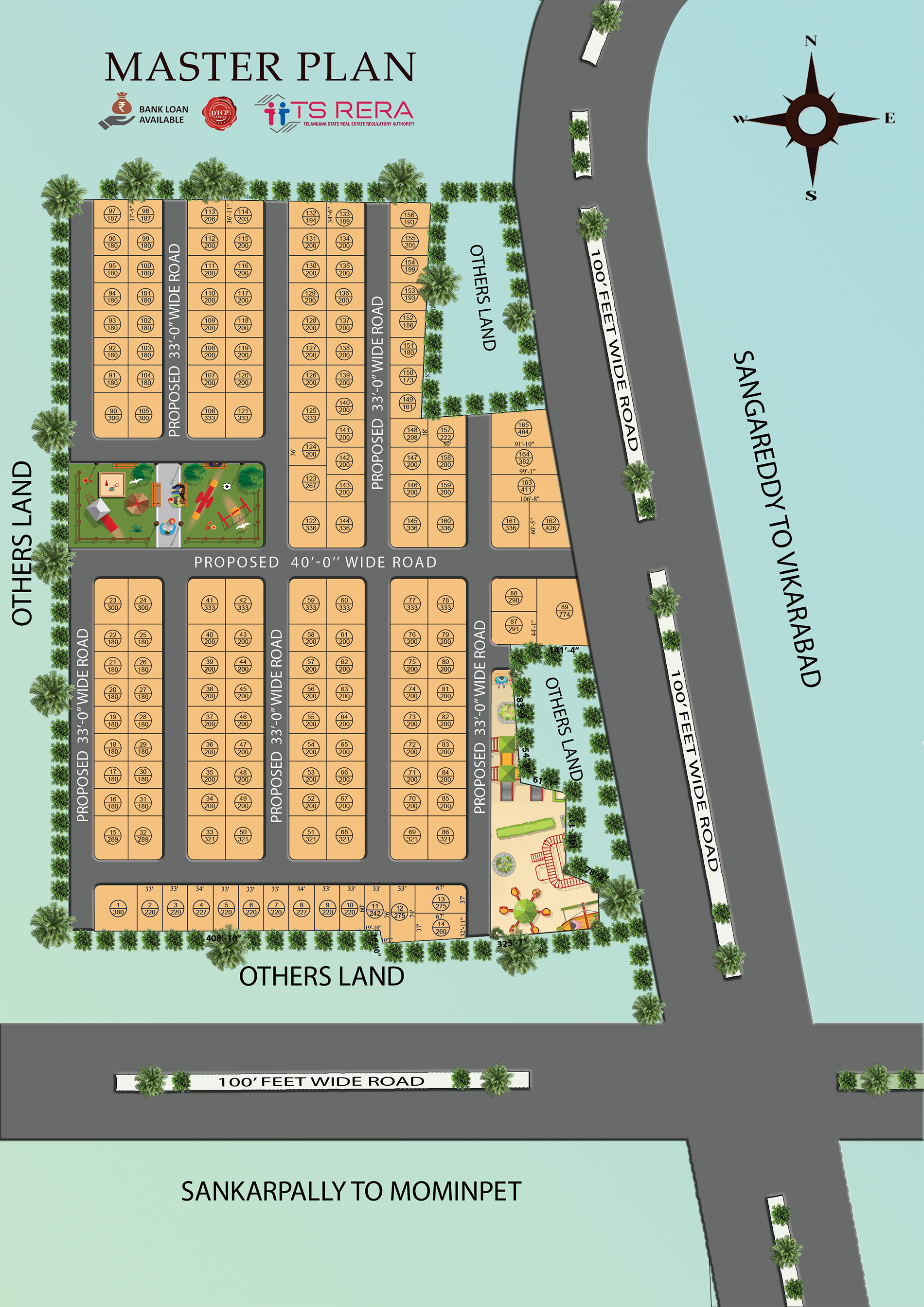 Site is located @ Mehtabkhan guda Junction right on the 100 ft Sangareddy to Vikarabad Road and Shankarpally to Mominpet Road Crossing.